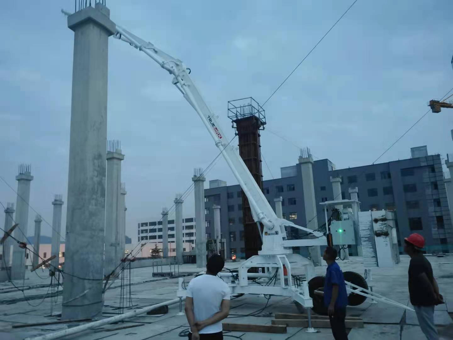 移動液壓布料機是可以移動或者履帶式移動方式,但是為了施工操作方便,大多移動液壓布料機都采用輪胎式進行移動,在樓面澆筑時,無需塔機和牽引機械進行移動,2人即可推動移動液壓布料機進行前進